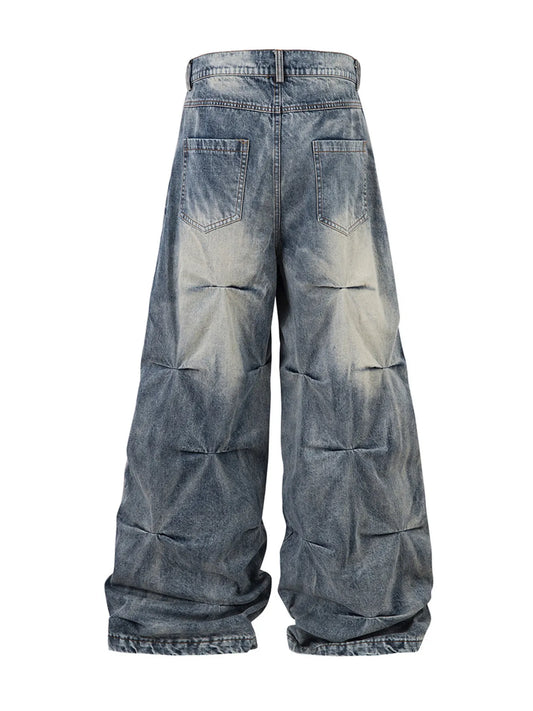 Men's Baggy Ruched Wide Leg Jeans