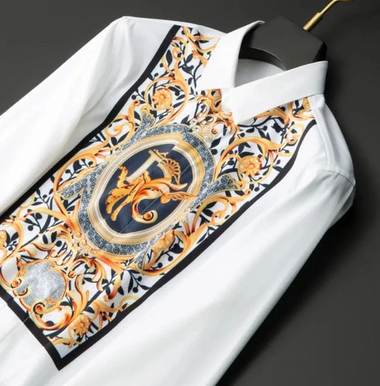 Long Sleeve Elastic Modal Thin All Over Print O-Neck Tattoo Shirt