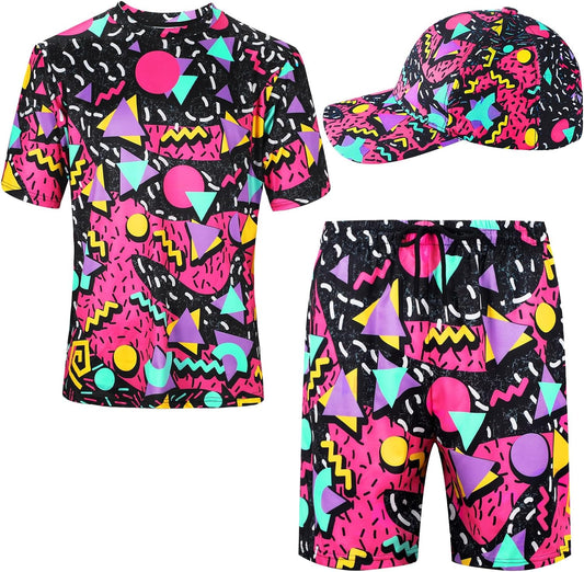 Men's 2 Pieces Retro Shirts and Shorts Set with Baseball Cap