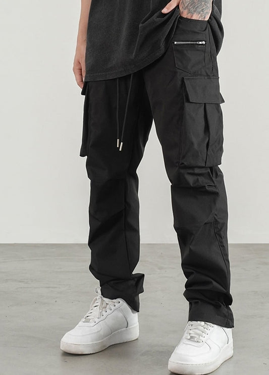 Men's Drawstring Waist Flap Pocket Cargo Pants