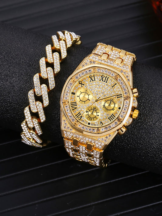 Men's Triple Dial Quartz Watch & 1pc Bracelet