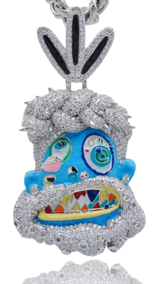 Cold Enamel Painted Abstract Art Tribe Chief Pendant Cuban Chain Necklace