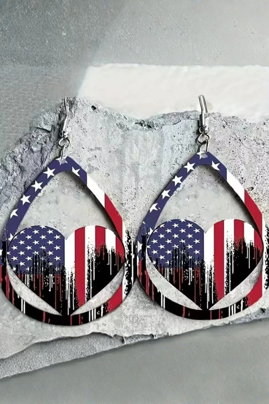 Women's US Flag Pattern Wooden Earrings