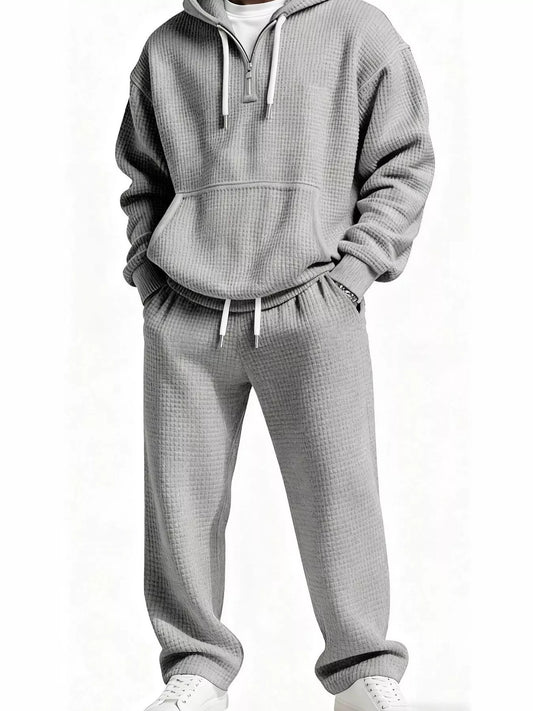 Men's Full Size Casual Waffle Knit Hoodie and Pants Set