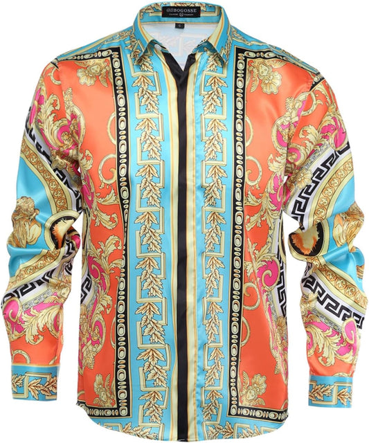 Men Floral/Golden Lion Luxury Printed Dress Shirts