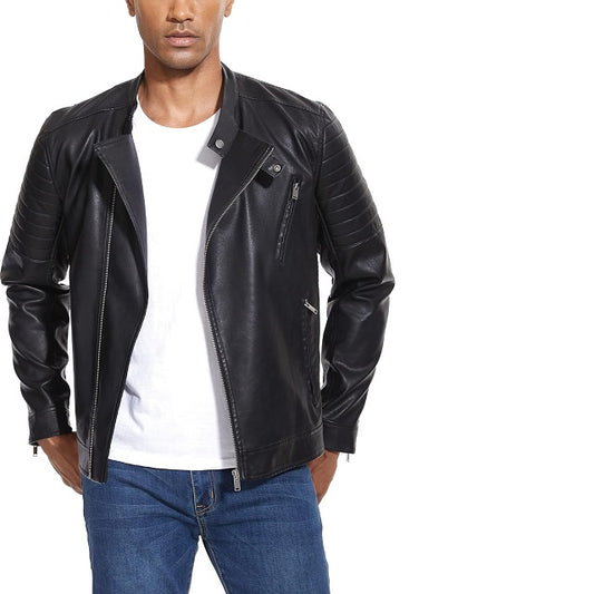 Men's Faux Leather Motorcycle Stand Collar Slim Fit Biker Coat