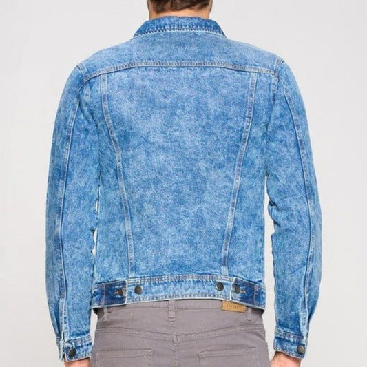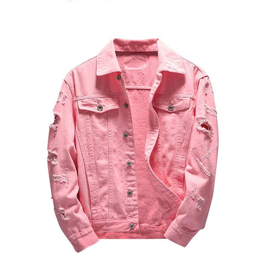 Men's Faux Fur Collar Ripped Denim Trucker Jacket