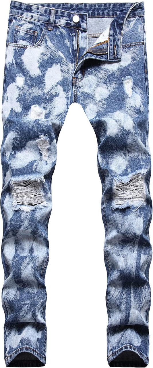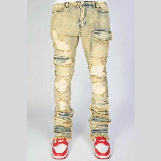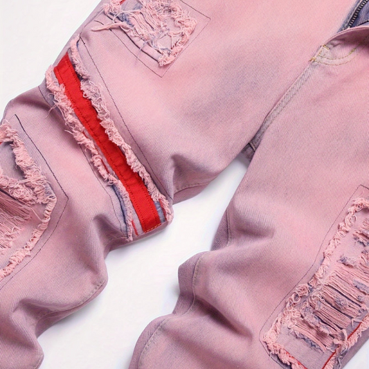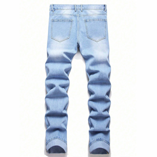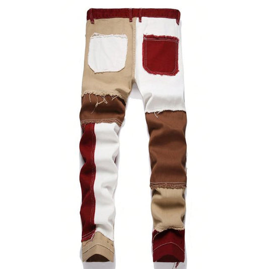 Men's Designer Straight Slim Fit Patchwork Jeans