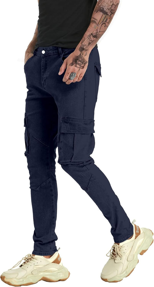 Men's Cargo Pocket Eyelet Lace-Up Casual Jeans