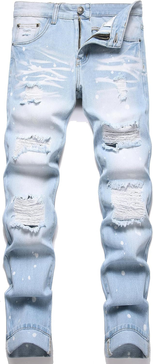 Men's Slim Fit Moto Stretch Ripped Biker Style Jeans