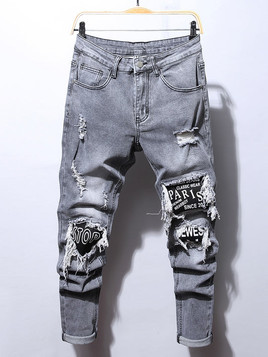 Men's Casual Slim Patched Comfortable High-Quality Jeans