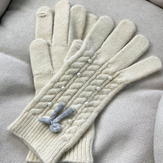 Thermal Pearl Detail Bow Five-Finger Gloves