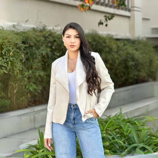 Women's Suede Lapel Zip Up Jacket