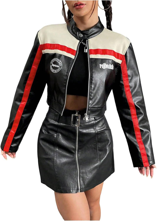 Women's Motorcycle Racing Zip Up Long Sleeve Leather Jackets