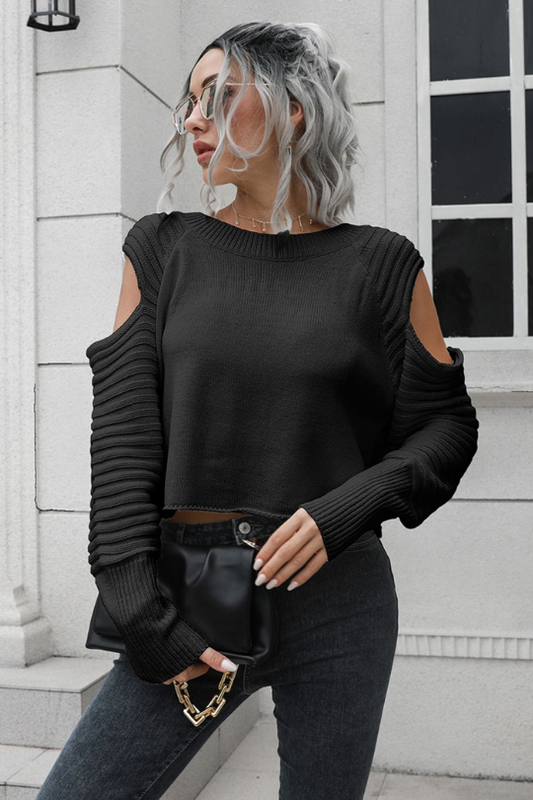 Women's Hollow Sleeve Ribbed Cropped Sweater