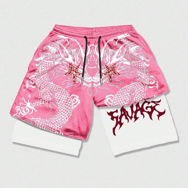 Men's Street Life Men's Dragon Printed Sports Basketball Shorts